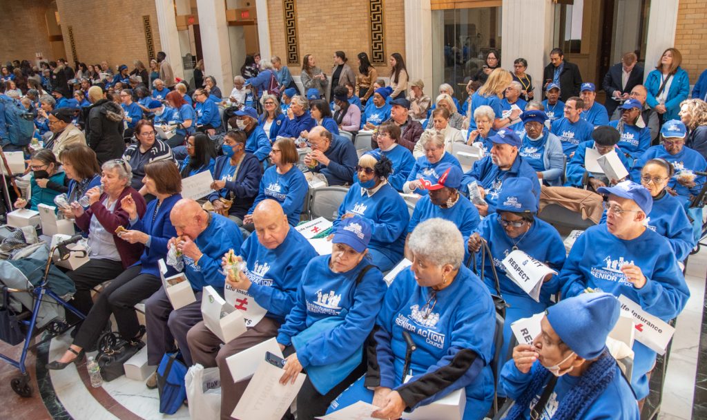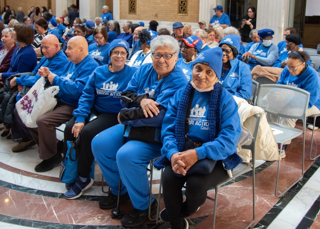 More than 500 older adults and advocates participated in the Older Adult Lobby Day in the Great Hall at the State House on Tuesday, February 27, 2024. Betsey Crimmins (Mass Home Care) and Ellen Taintor (Mystic Valley Elder Services) organized the event.
